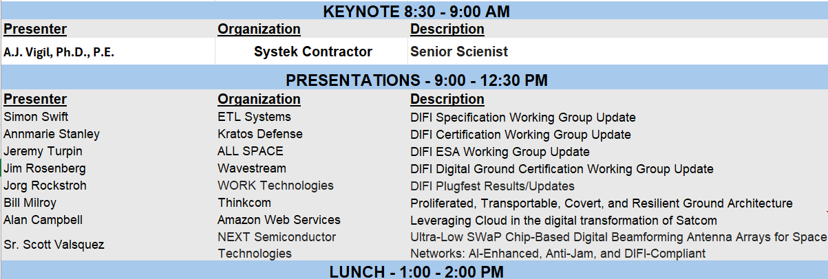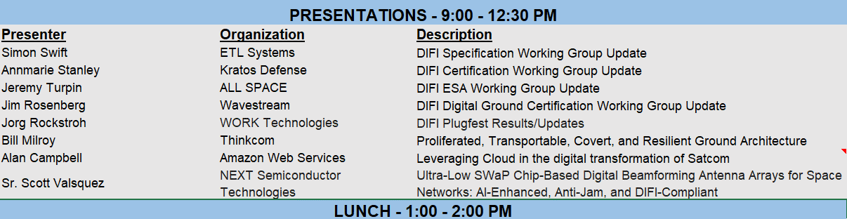MILCOM 24 Agenda – DIFI Workshop